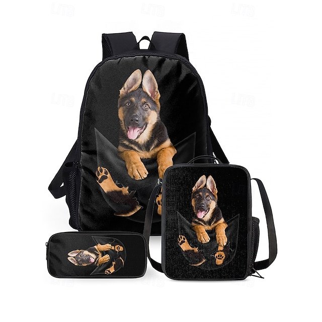 3D Dog Backpack with German Shepherd Print – Fun Animal School