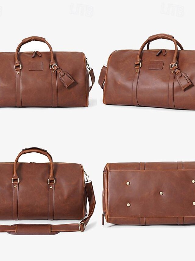Gender: Men’s, Type: Duffle Bag, Material: PU Leather, Embellishment: Zipper, Pattern: Solid Color, Detachable strap: Detachable, Adjustable strap: Adjustable, Occasion: Travel, Outdoor, Holiday, Width (cm): 27, Height (cm): 29, Length (cm): 50, Function: Waterproof, Large Capacity, Multi Carry, Category: Handbag,