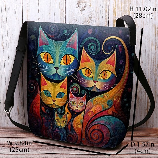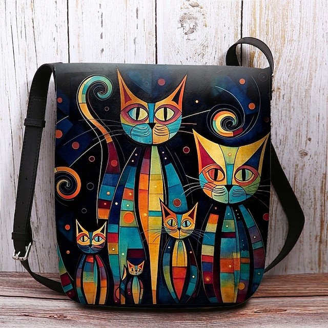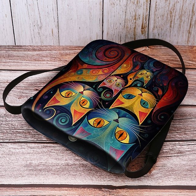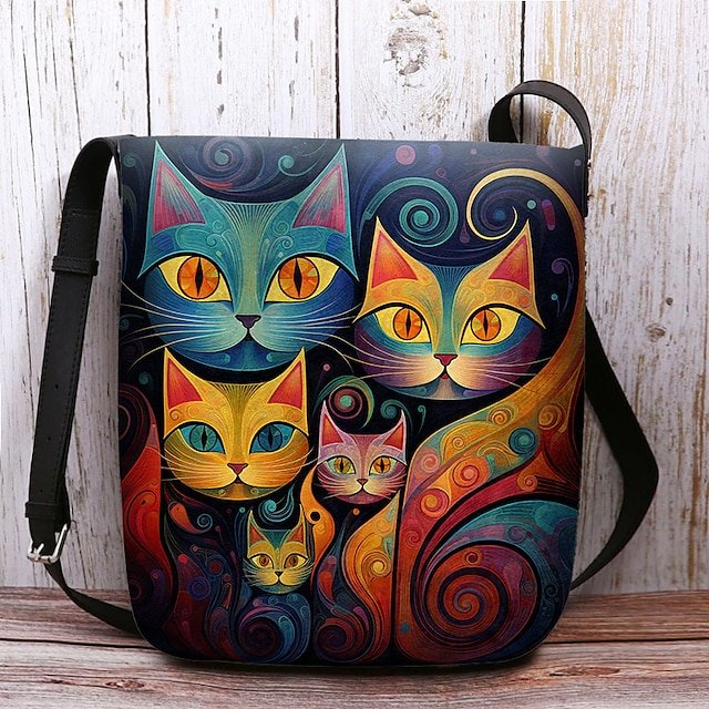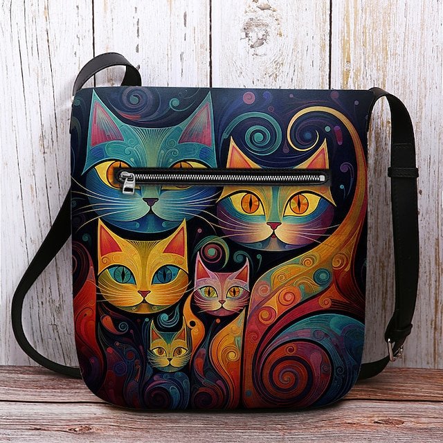 Artistic Cat Print Crossbody Bag – Vibrant Abstract Design