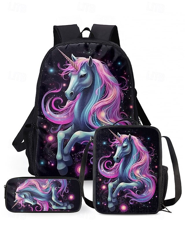 Gender: Women’s, Girls’, Kid’s, Type: School Bag Bookbag, School Backpack Bookbag, Material: Oxford Cloth, Embellishment: Zipper, Pattern: Unicorn, Occasion: Daily, Outdoor, School, Width (cm): 30, Height (cm): 40, Function: Lightweight, Large Capacity, Category: Backpack,