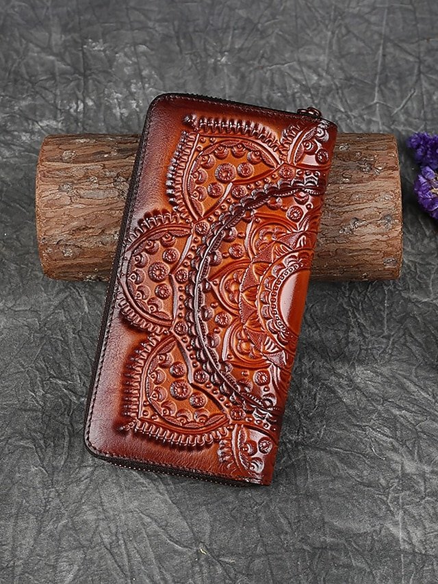 Handmade leather continental wallet with elegant mandala pattern