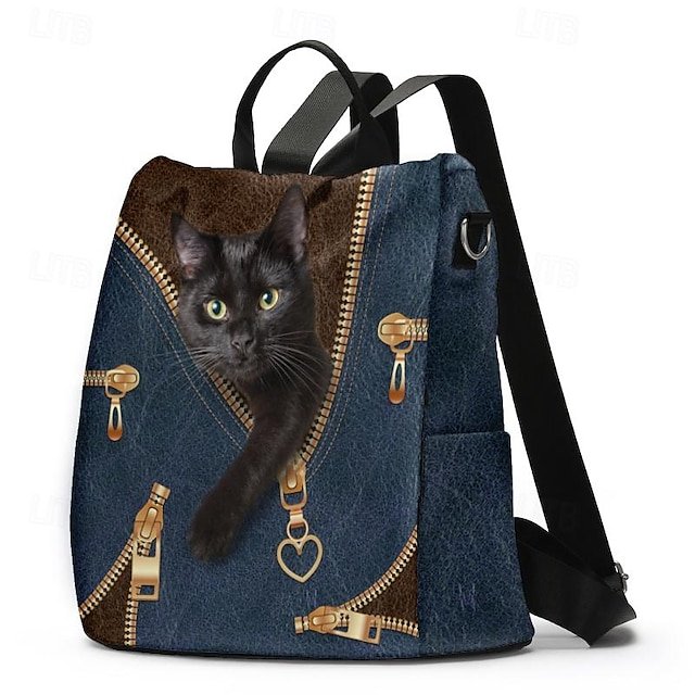 Gender: Women’s, Type: School Bag Bookbag, Material: Polyester, Embellishment: Zipper, Print, Pattern: Cat, Occasion: School, Daily, Outdoor, Width (cm): 31, Height (cm): 34, Function: Waterproof, Large Capacity, Multi Carry, Category: Backpack,
