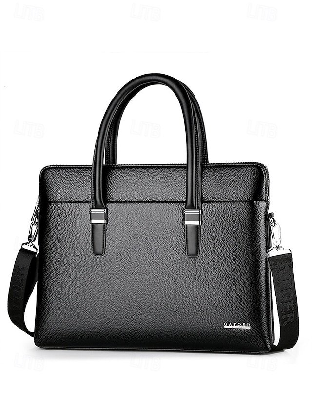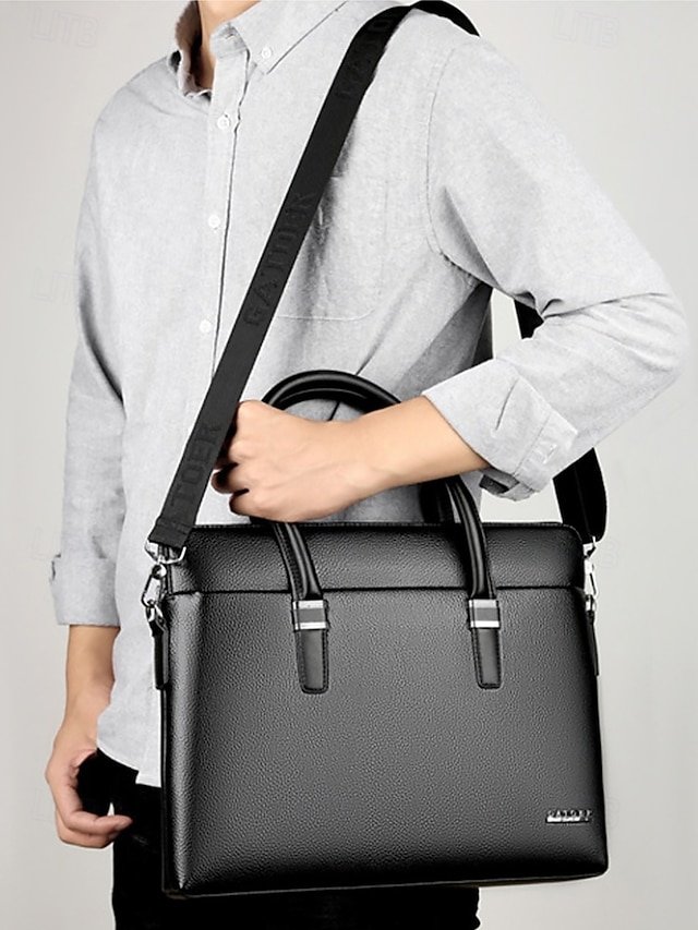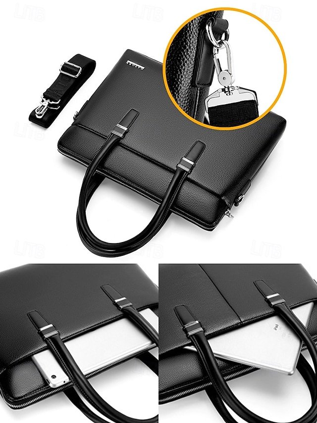 Gender: Men’s, Type: Laptop Bag, Crossbody Bag, Material: PU Leather, Embellishment: Zipper, Pattern: Solid Color, Detachable strap: Detachable, Adjustable strap: Adjustable, Occasion: Office, Daily, Width (cm): 6, Height (cm): 39, Length (cm): 29, Function: Waterproof, Large Capacity, Category: Briefcase,