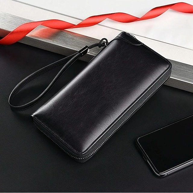 Gender: Men’s, Material: PU Leather, Embellishment: Zipper, Pattern: Solid Color, Occasion: Shopping, Daily, Width (cm): 2.5, Height (cm): 11.5, Length (cm): 21.5, Function: Lightweight, Durable, Category: Wallet,