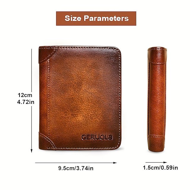 Gender: Men’s, Type: Credit Card Holder Wallet, Material: Cowhide, Embellishment: Zipper, Pattern: Solid Color, Occasion: Shopping, Daily, Width (cm): 1.5, Length (cm): 9.5, Height (cm): 12, Function: Foldable, Large Capacity, Durable, RFID Blocking, Category: Wallet,