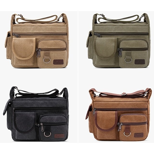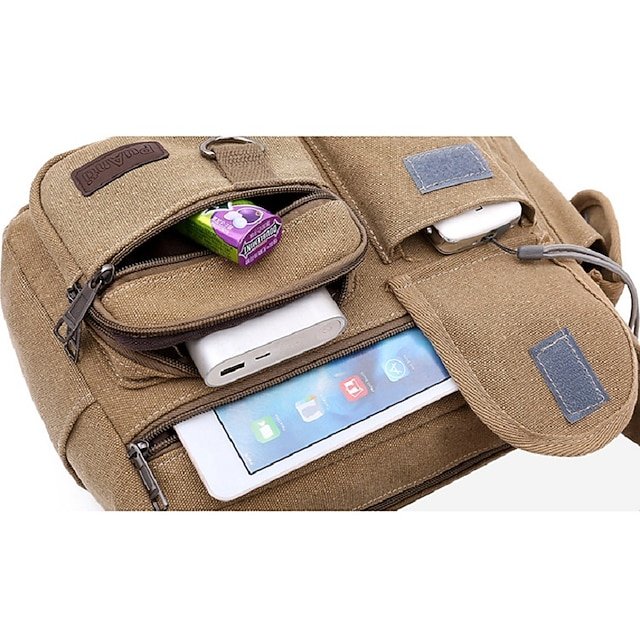 Men’s Vintage Canvas Crossbody Messenger Bag, Multi-Pocket