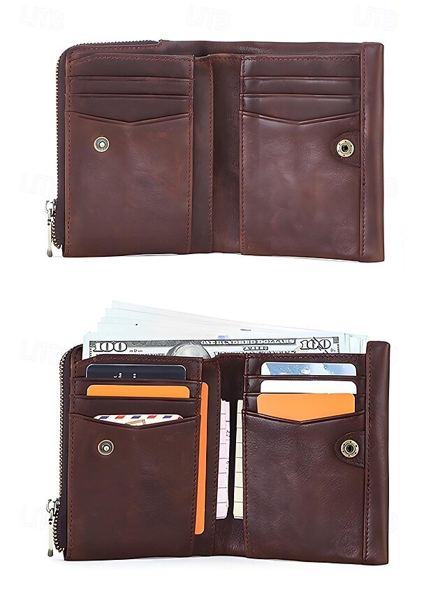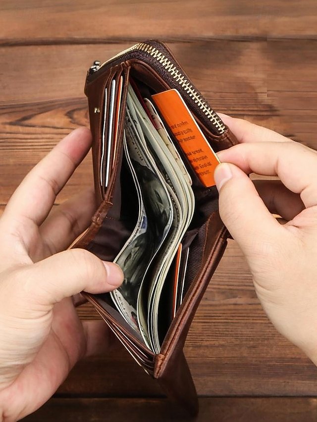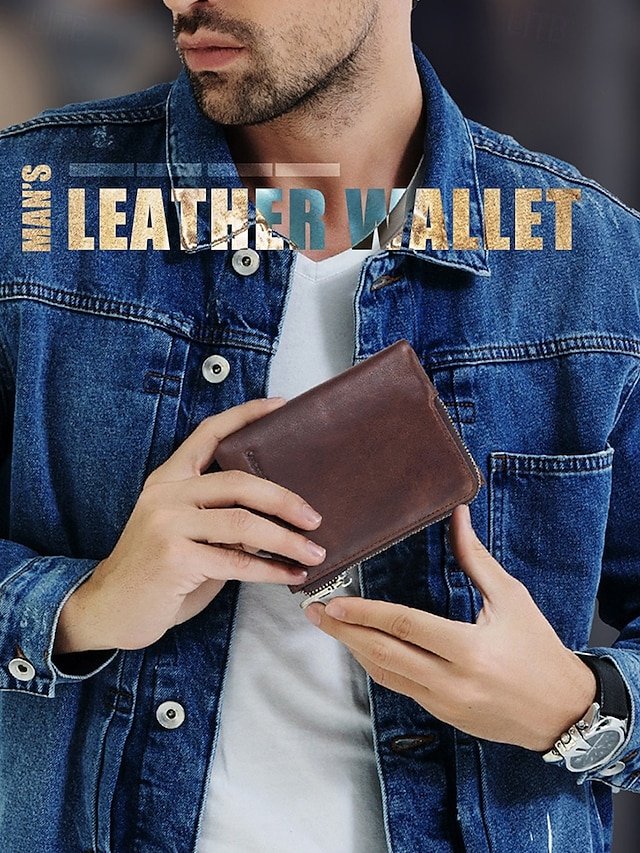 Gender: Men’s, Type: Credit Card Holder Wallet, Material: Leather, Embellishment: Zipper, Multiple pockets, Pattern: Solid Color, Adjustable strap: Non-Adjustable, Occasion: Office, Casual Daily, Casual, Width (cm): 1.5, Height (cm): 11, Length (cm): 9.5, Function: Lightweight, Large Capacity, Durable, Category: Wallet,