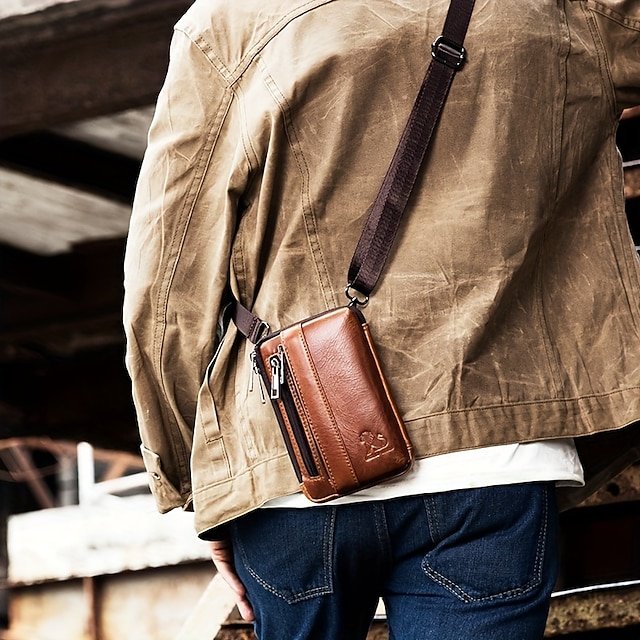 Gender: Men’s, Type: Coin Purse, Mobile Phone Bag, Fanny Pack, Belt Bag, Material: Leather, Embellishment: Zipper, Pattern: Solid Color, Occasion: Shopping, Daily, Office, Width (cm): 3.5, Length (cm): 12, Height (cm): 19, Category: Wallet, Crossbody Bag, 2025 Trends: Bum Bag, Messenger Bag,