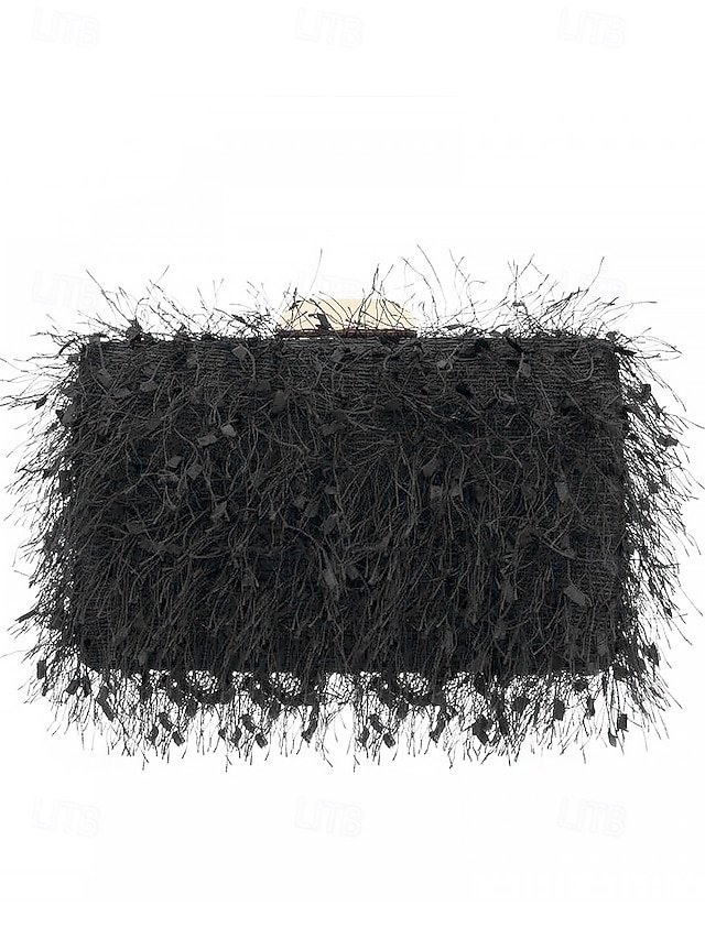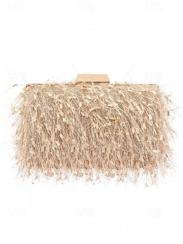 Women’s Chic Feathered Evening Clutch with Chain Strap,