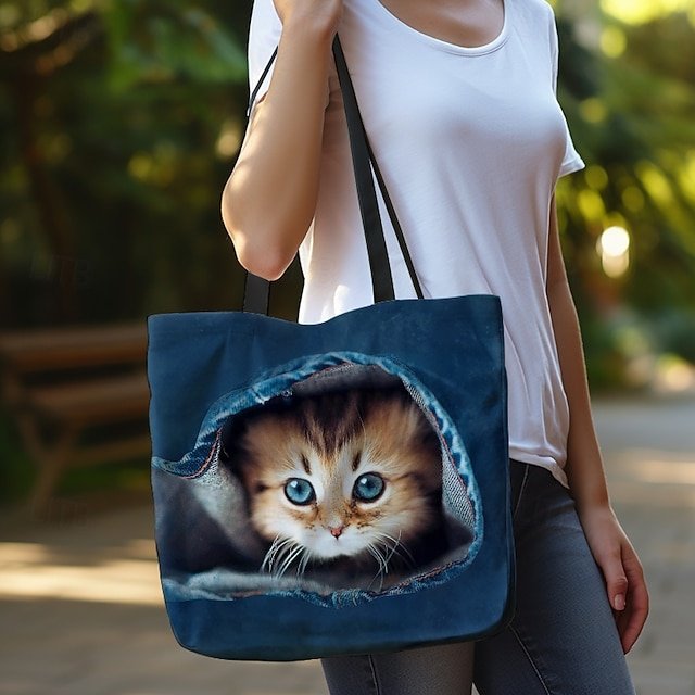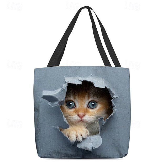Gender: Women’s, Type: Canvas Tote Bag, Material: Polyester, Embellishment: Print, Pattern: Cat, Detachable strap: Non-Detachable, Adjustable strap: Non-Adjustable, Occasion: Casual Daily, Holiday, Shopping, Width (cm): 1, Height (cm): 45, Length (cm): 45, Function: Lightweight, Foldable, Large Capacity, Category: Tote,