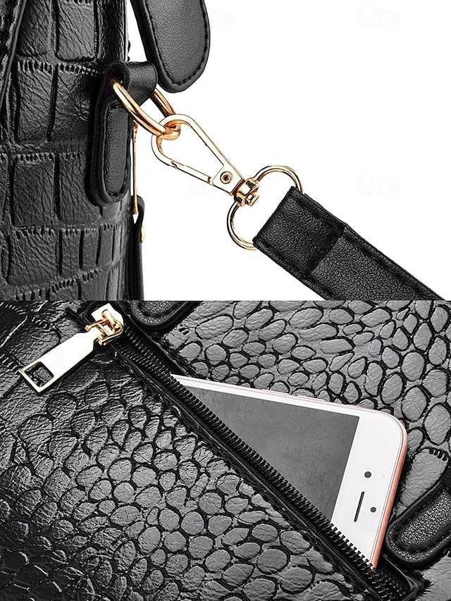 Gender: Women’s, Type: Crossbody Bag, Shoulder Bags, Material: Leather, PU Leather, Embellishment: Zipper, Pendant, Pattern: Crocodile, Solid Color, Detachable strap: Detachable, Adjustable strap: Adjustable, Occasion: Mother’s Day, Office, Casual Daily, Width (cm): 14, Height (cm): 23, Length (cm): 24, Function: Waterproof, Multi Carry, Category: Handbag,