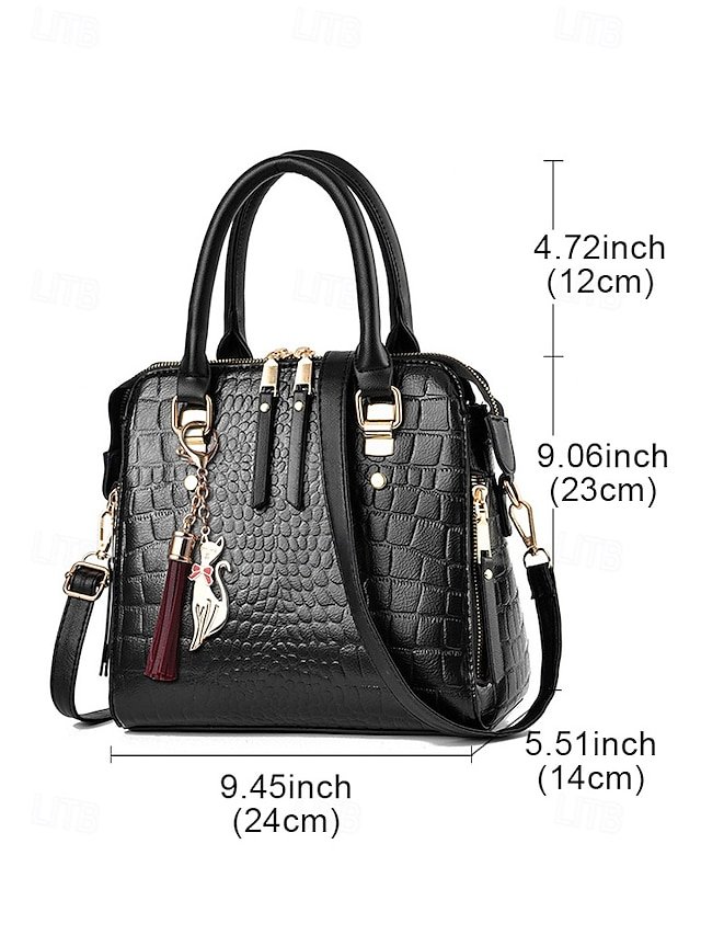 Women’s Faux Leather Crocodile Pattern Handbag with Tassel