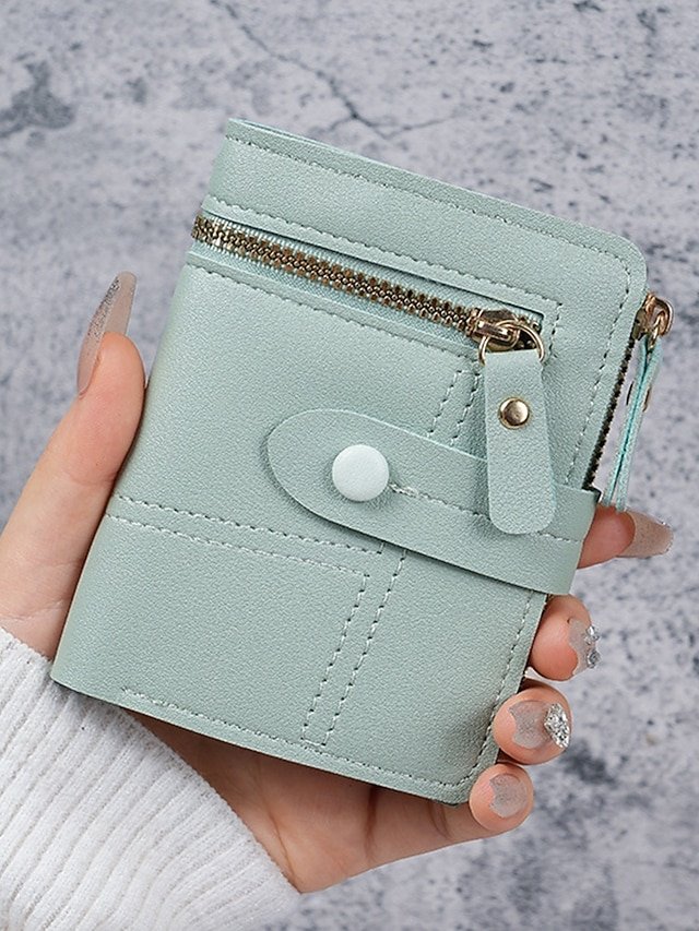 Gender: Women’s, Type: Credit Card Holder Wallet, Material: PU Leather, Embellishment: Zipper, Multiple pockets, Pattern: Solid Color, Adjustable strap: Non-Adjustable, Occasion: Shopping, Casual, Office, Width (cm): 9, Height (cm): 11.5, Length (cm): 0.6, Function: Large Capacity, Category: Wallet,